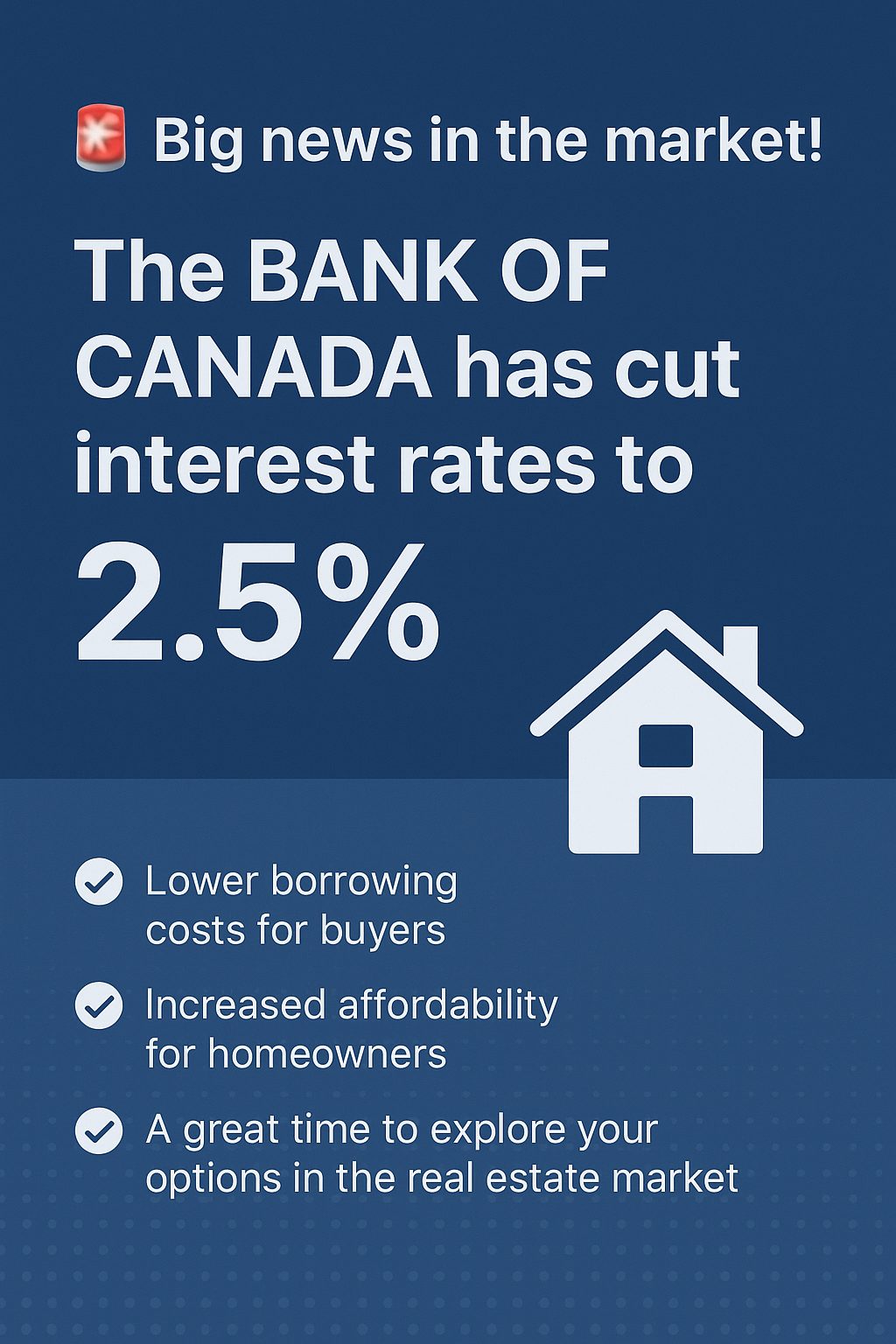 Today, the Bank of Canada announced a reduction in its policy interest rate (the overnight rate) by 25 basis points, bringing it down from 2.75% to 2.50%. This is the lowest the interest rate has been in about three years.